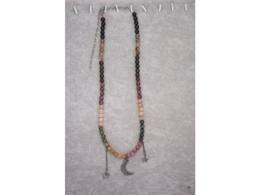 Krásný náhrdelník z melounového turmalínu, který nám dává energii a zvyšuje naše vibrace, jako jeden z unverzálních kamenů.